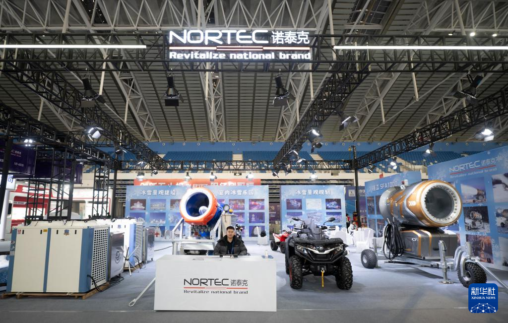 1月6日在2026哈尔滨国际冰雪经济博览会拍摄的冰雪装备展区内一处展台。