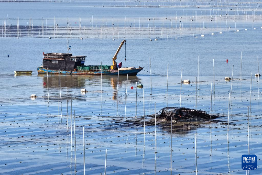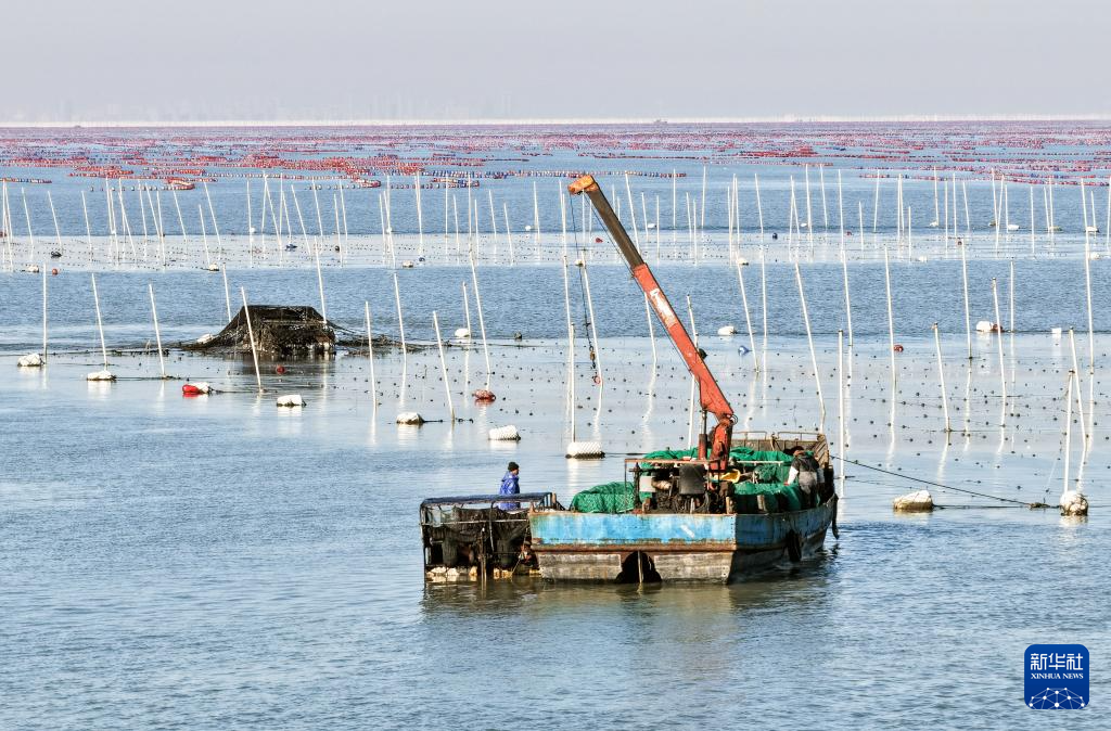 眼下,江苏连云港市海州湾渔场养殖区的头茬条斑紫菜迎来收获时节,“海上菜园”到处都是抢收紫菜的繁忙景象。