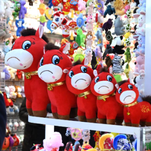 1月12日在浙江义乌市国际商贸城一区玩具销售区拍摄的“哭哭马”小马公仔玩具。
