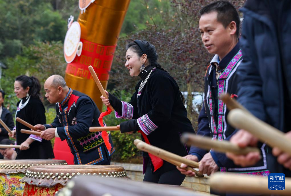 2025年12月21日是冬至,贵州省铜仁市玉屏侗族自治县新店镇大湾村村民击鼓庆祝。
