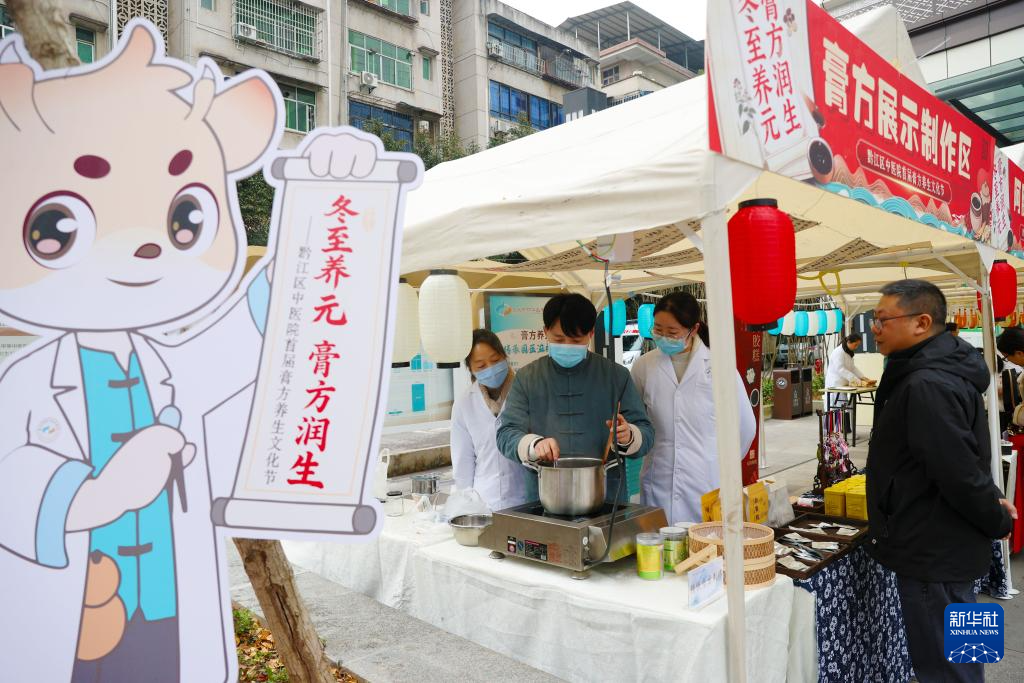 2025年12月21日是冬至,重庆市黔江区中医医院医务人员在养生文化节活动现场制作冬至养元膏方。