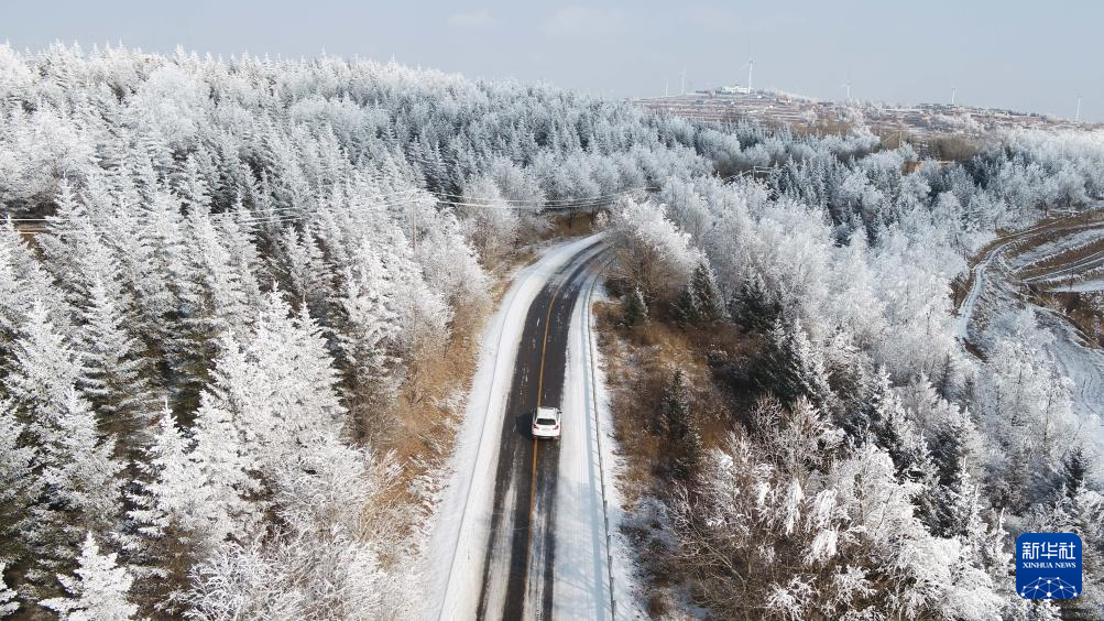 2026年1月5日在甘肃省定西市通渭县华家岭镇拍摄的雾凇景观(无人机照片)。