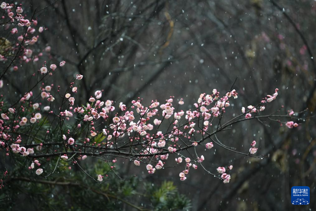 2026年1月1日在河南省济源市承留镇花石村梅园拍摄的雪后梅花。