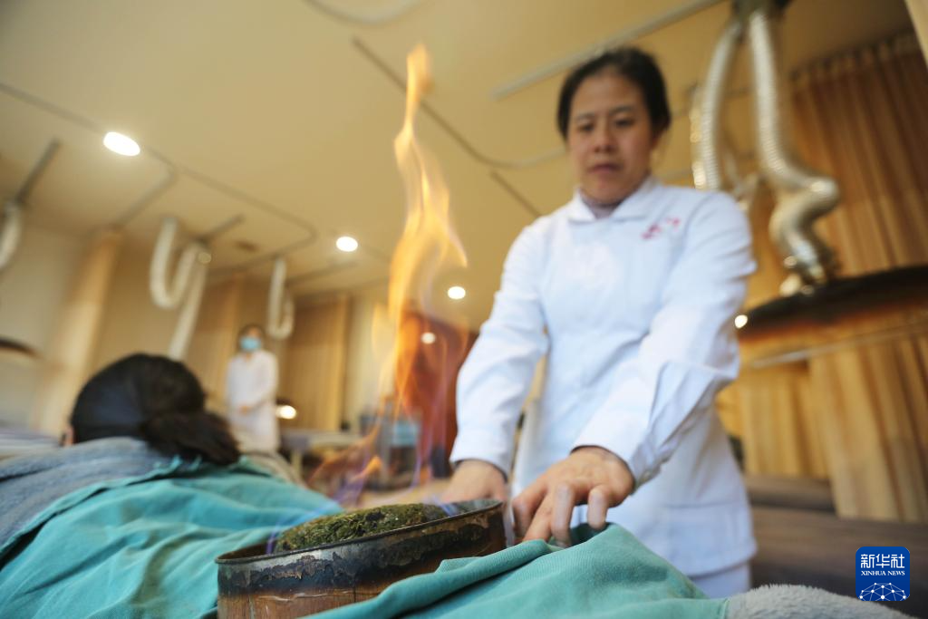 2026年1月8日是“三九”第一天,在甘肃省定西市中医医院,医生用艾灸为患者进行“冬病冬治”。