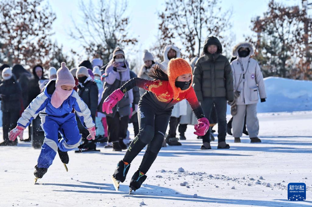 2026年1月12日,在黑龙江省同江市,青少年体校的孩子进行速滑训练。