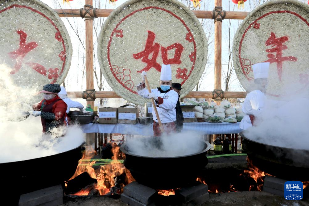 2025年12月21日是冬至,厨师在甘肃省张掖市山丹县清泉镇祁店村制作特色大锅饭“牛娃子饭”,当地有冬至吃“牛娃子饭”的习俗。