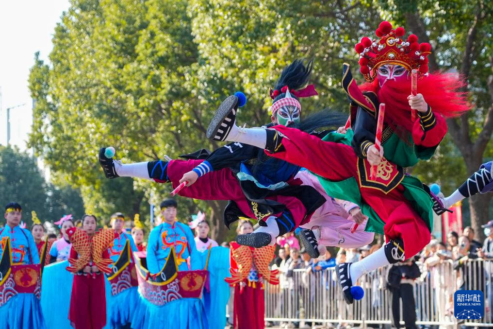 2025年12月20日,在浙江省宁波市镇海区澥浦镇,民间艺人在文化巡游迎冬至活动上表演英歌舞。