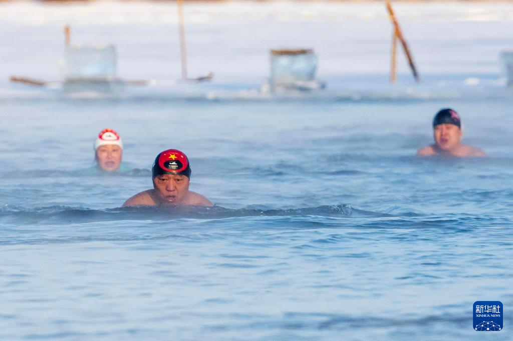 2026年1月13日,黑龙江省齐齐哈尔市冬泳爱好者在严寒中冬泳。