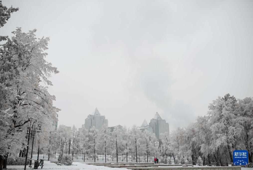 近日,哈萨克斯坦第一大城市阿拉木图迎来持续性降雪天气。