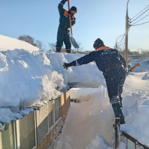 1月19日,在俄罗斯堪察加边疆区首府堪察加彼得罗巴甫洛夫斯克市,工作人员在清理积雪。