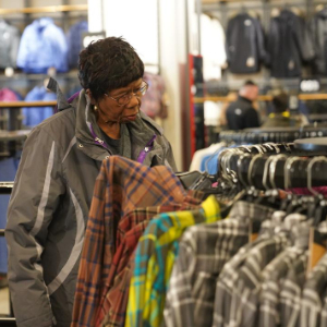 1月22日,在美国纽约一处购物中心,顾客挑选商品。
