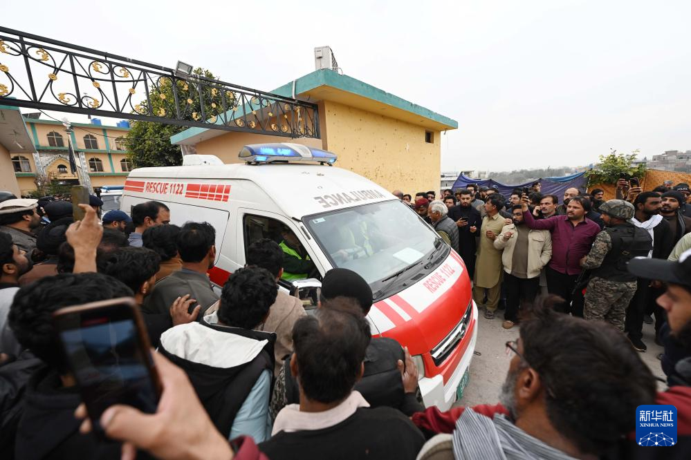 2月6日,在巴基斯坦首都伊斯兰堡,救护车离开爆炸现场。