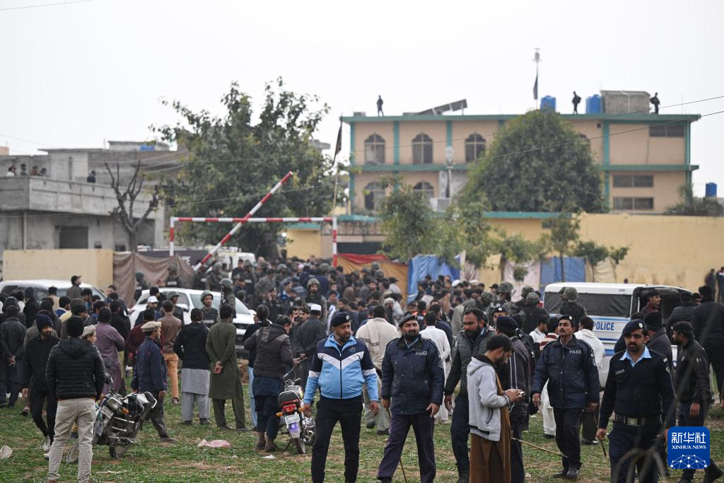 2月6日,在巴基斯坦首都伊斯兰堡,安全人员和围观群众聚集在爆炸现场。