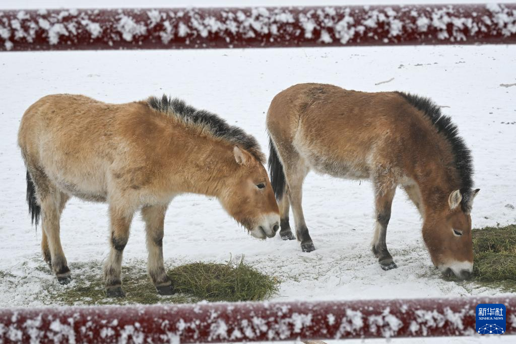 管护员穿梭在雪原沙漠间,驱车踏雪监测马群活动轨迹,排查野外生存隐患,为普氏野马筑牢越冬安全屏障。野马繁育研究所内,饲养员与兽医师24小时值守,细致观察野马饮食起居,监测幼驹健康,精准记录生长状况,为后续繁育和野化训练积累详实的科学数据。
