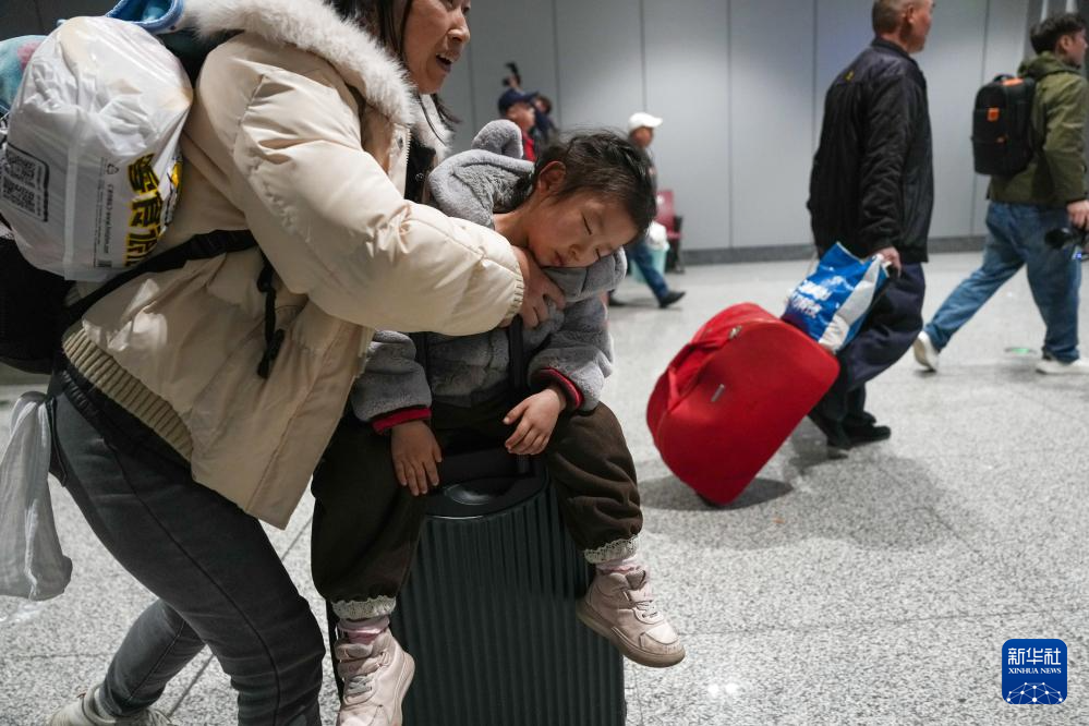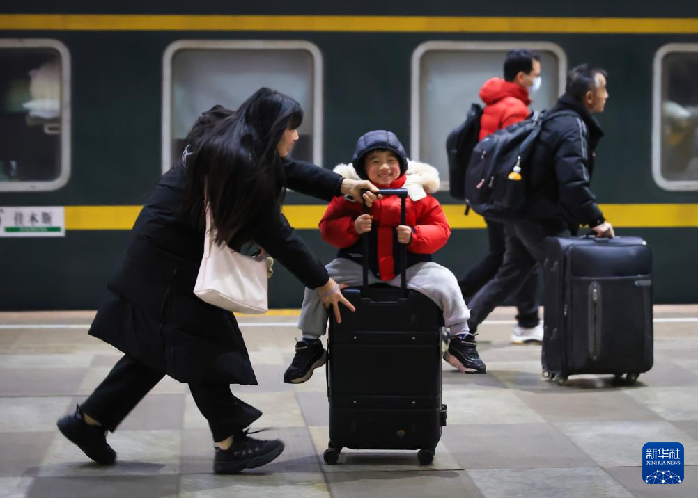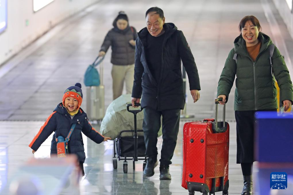 2月2日,在北京西站,小朋友跟随姥姥、姥爷准备乘坐G321次列车回老家。