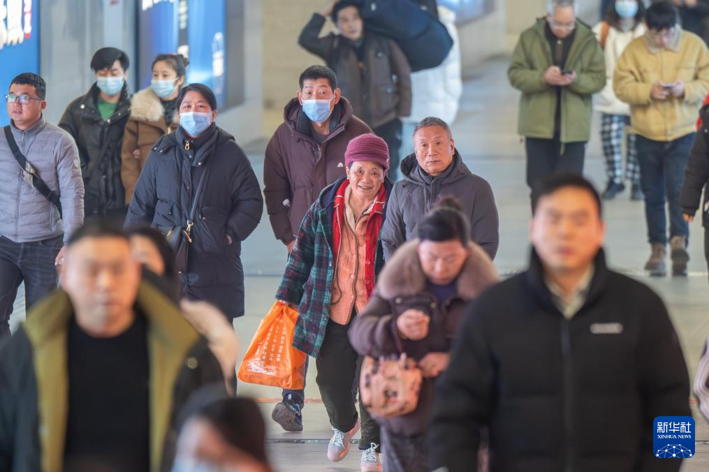2月2日,旅客在湖北武汉汉口火车站出行。