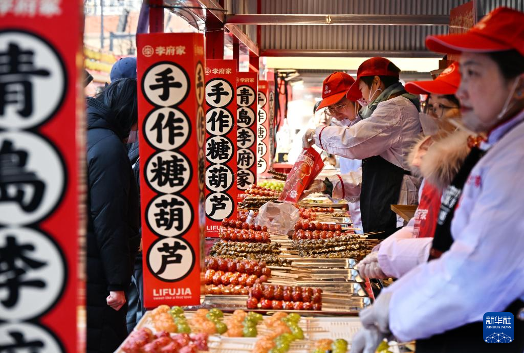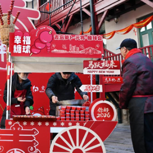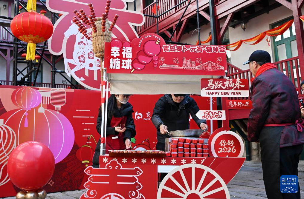 2月17日,2026年青岛萝卜·元宵·糖球会在青岛市市北区大鲍岛文化休闲街区开幕。这一当地春节传统民俗盛会汇聚了糖球制作、非遗展演、特色文创及地方美食等,现场人流如织,年味浓郁。