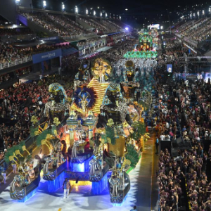2月17日晚,桑巴舞者参加在巴西里约热内卢举行的2026年狂欢节游行。
