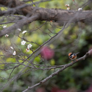 2月22日,合肥市匡河公园内梅花绽放,鸟儿在枝头小憩。