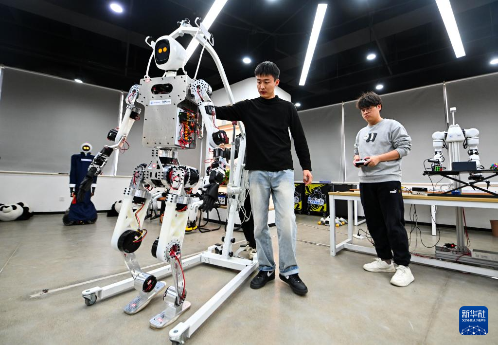 2月27日,在位于天津滨海高新区的天津木牛流马科技发展股份有限公司,工作人员对一款具身机器人进行测试验证。