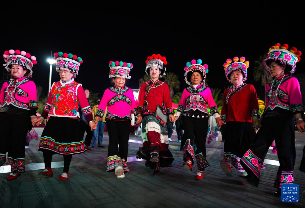 2月9日,金瑞瑞(中)在云南省牟定县与当地群众一起跳舞。