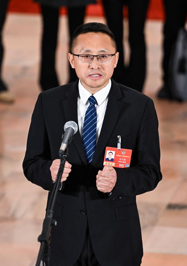 3月7日,全国政协十四届四次会议第二场“委员通道”集体采访活动在北京人民大会堂举行。这是全国政协委员王小龙接受媒体采访。
