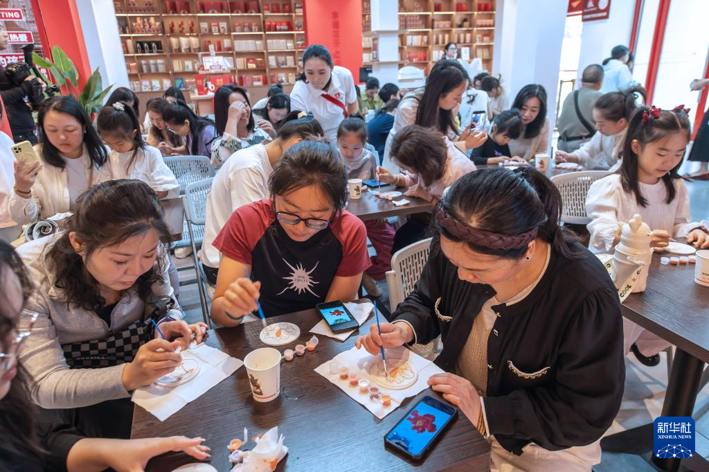 3月8日,位于海南省琼海市的红色娘子军纪念园举办“琼花传匠心 经典绘新篇”妇女节主题文化活动。这是游客在创作釉彩作品。