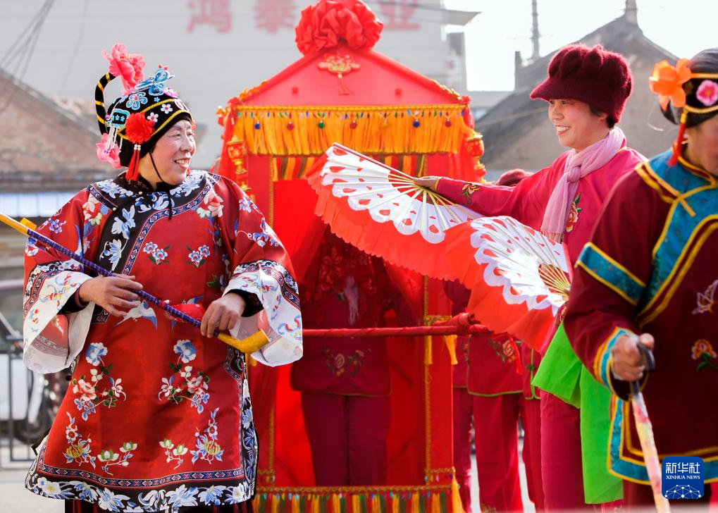 3月8日,在河南省焦作市博爱县柏山镇义沟村,村民表演节目。