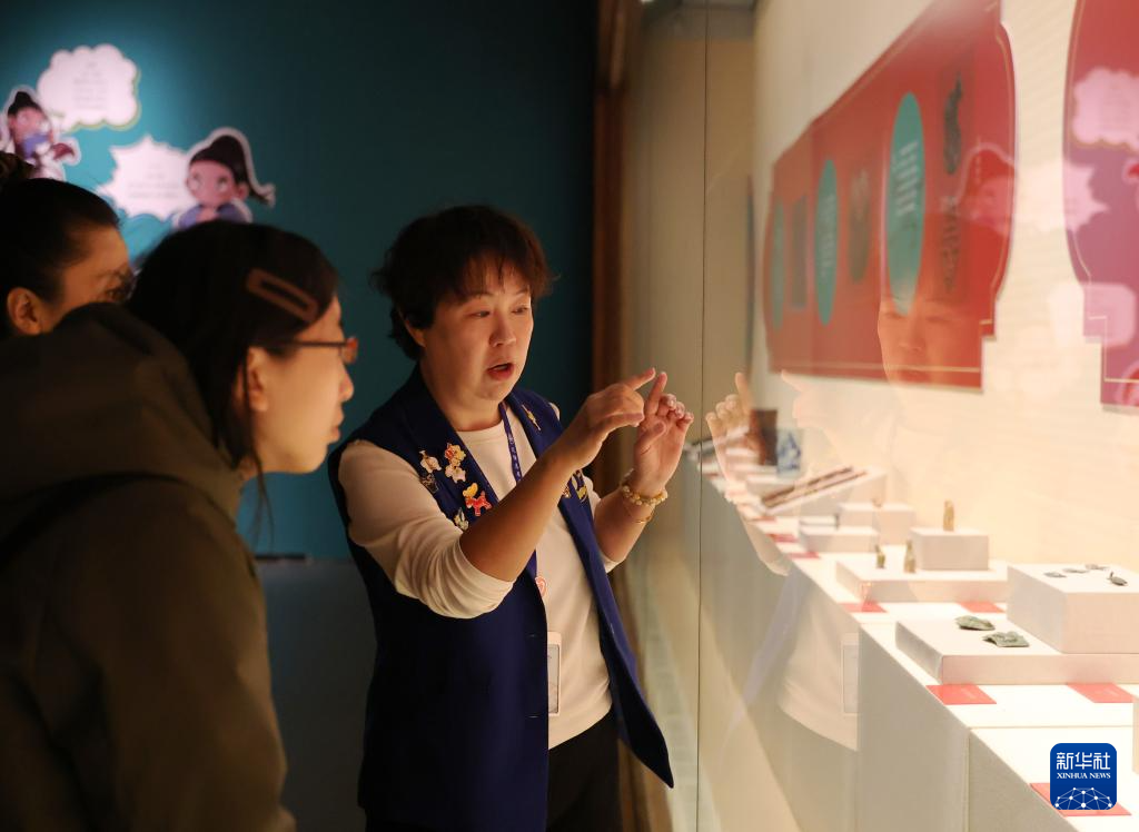 3月8日,辽宁省博物馆举行公益讲解、亲子互动、精品折扣活动。这是志愿者舒女士(右)为游客讲解“丙午马年生肖文物展”。