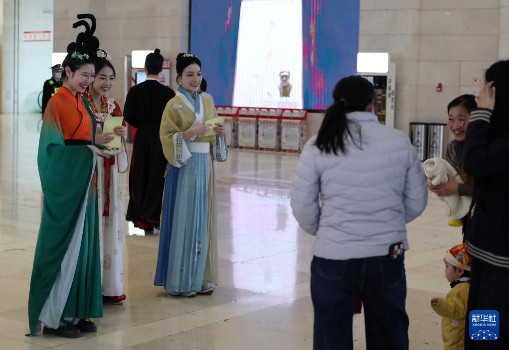 3月8日,辽宁省博物馆举行公益讲解、亲子互动、精品折扣活动。这是工作人员在入口处迎候游客。