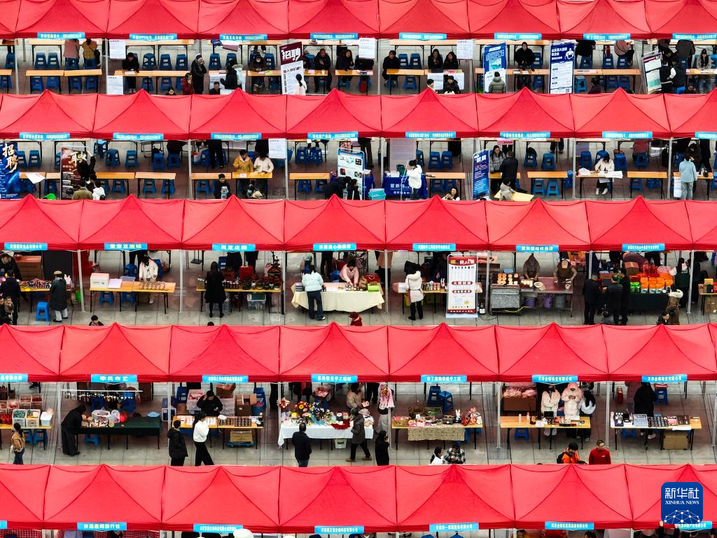 这是3月8日拍摄的河南省济源市女性专场招聘会现场(无人机照片)。