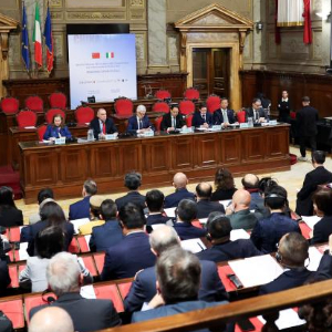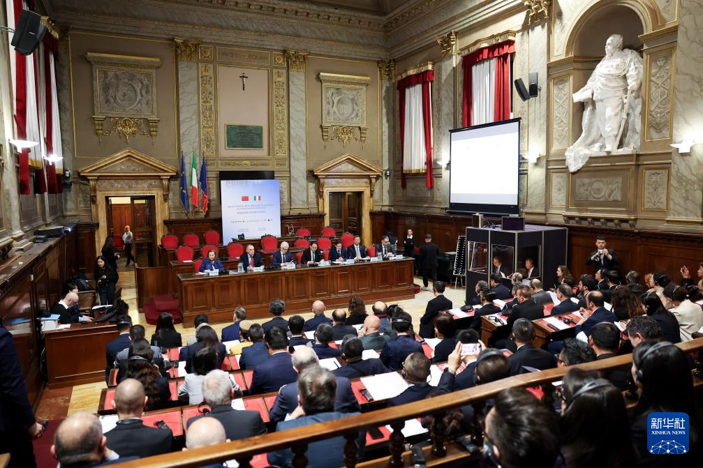 4月16日,在意大利罗马,嘉宾出席第四届中意友城合作对话会。