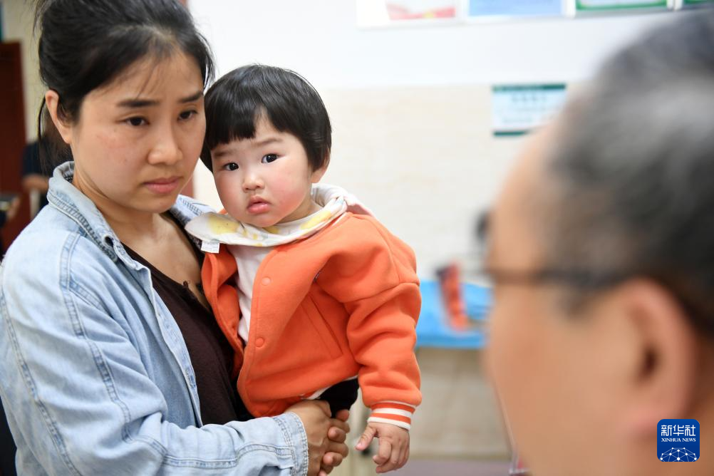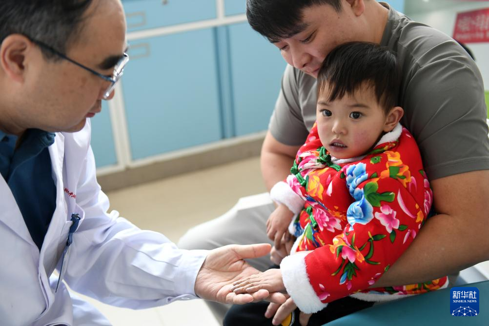 4月16日,在位于衡阳市的南华大学附属第二医院,来自山东第一医科大学附属中心医院的医疗专家为孩子做检查。