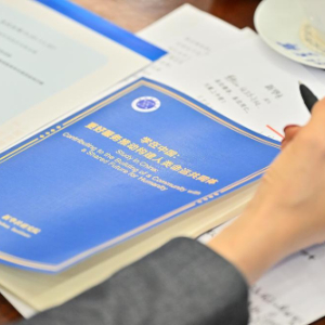 这是4月25日在智库报告发布研讨会现场拍摄的《学在中国:更好服务推动构建人类命运共同体》智库报告。