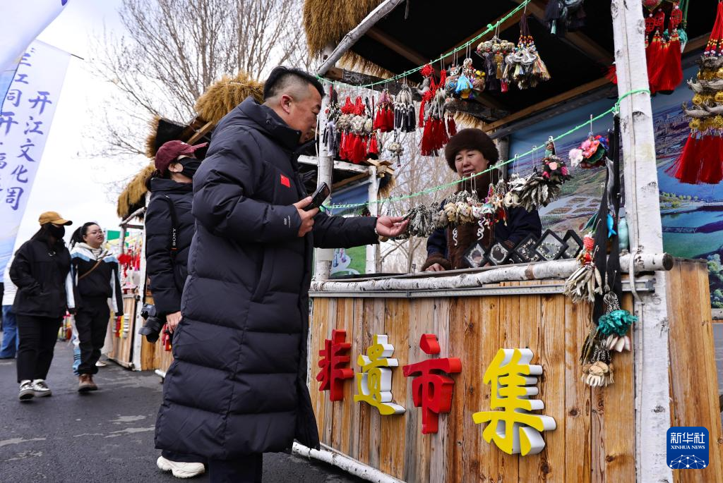4月25日,在开江文化周活动现场,游客在非遗市集购物。