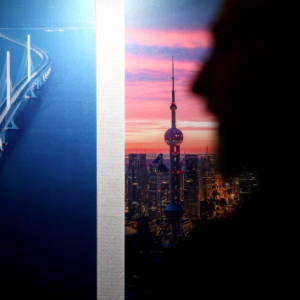 4月24日,在英国伦敦举行的“城市茶客厅”暨“魅力上海”城市形象推广活动上,一名男子参观“品茗上海·镜头里的故事”上海城市影像展。