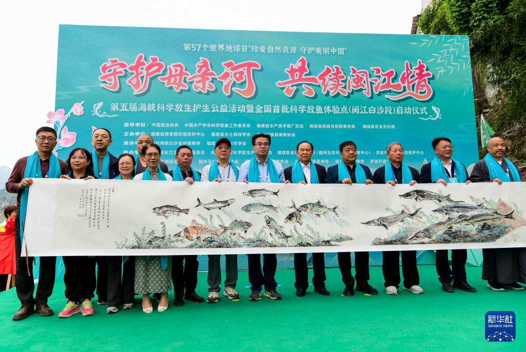 这是在福州市闽侯县白沙镇金钟阁畔举行的增殖放流活动现场(4月25日摄)。