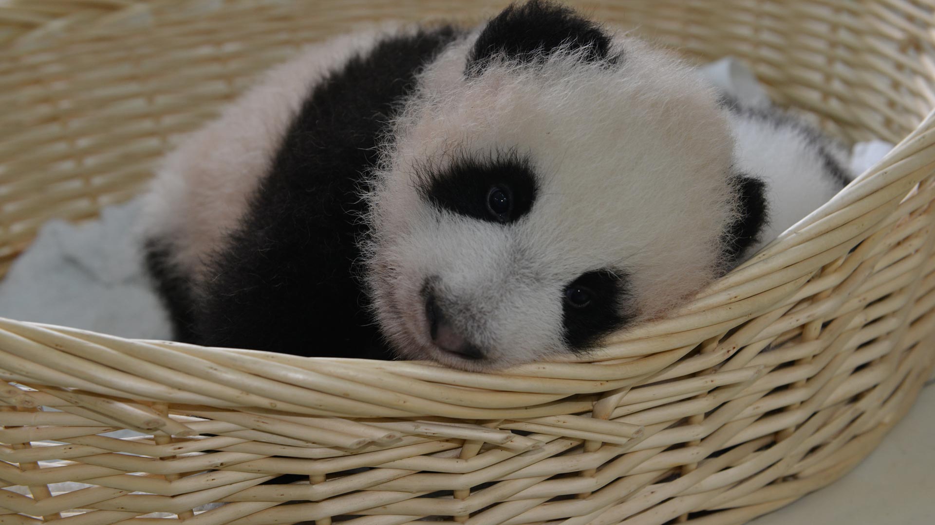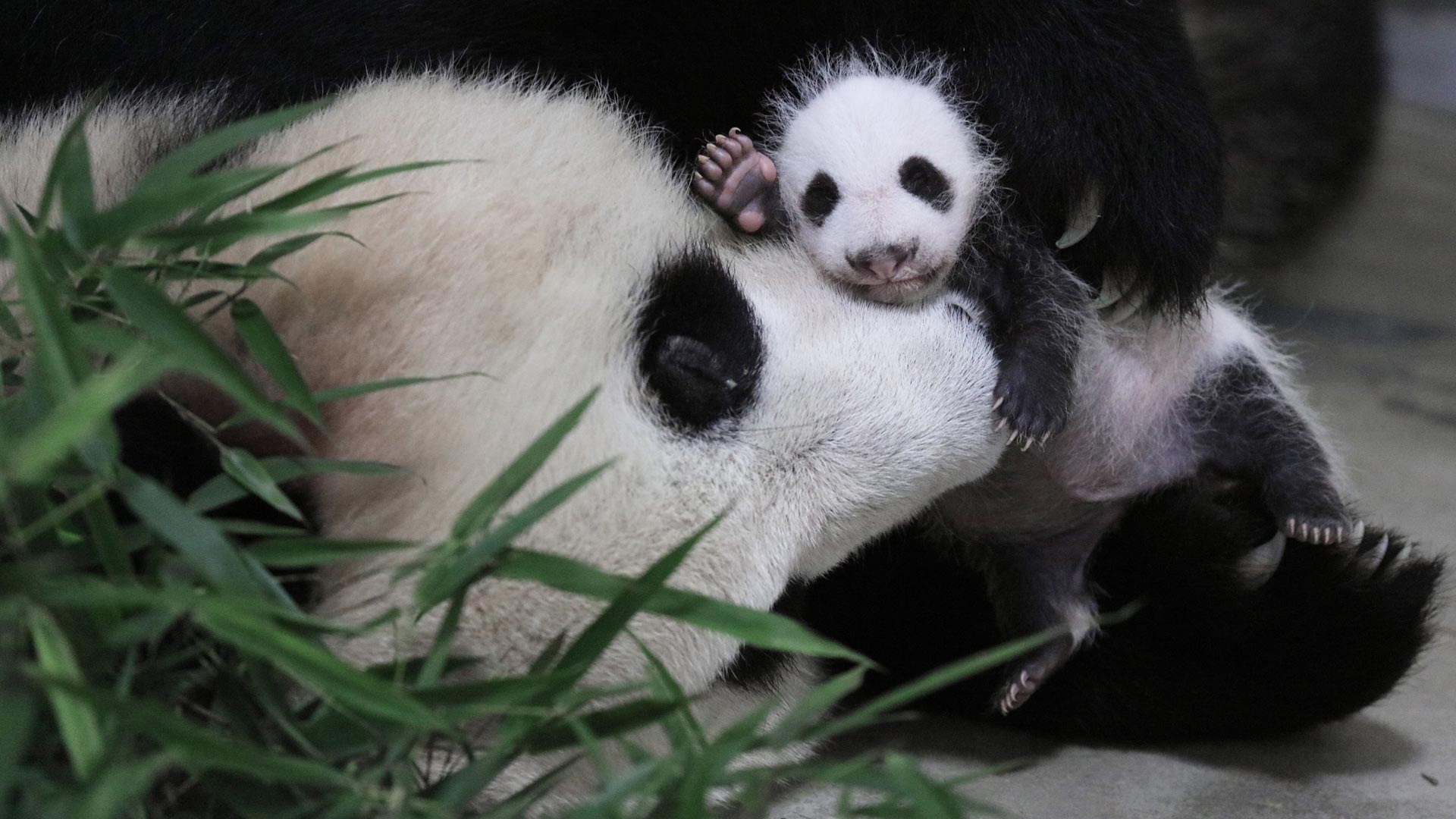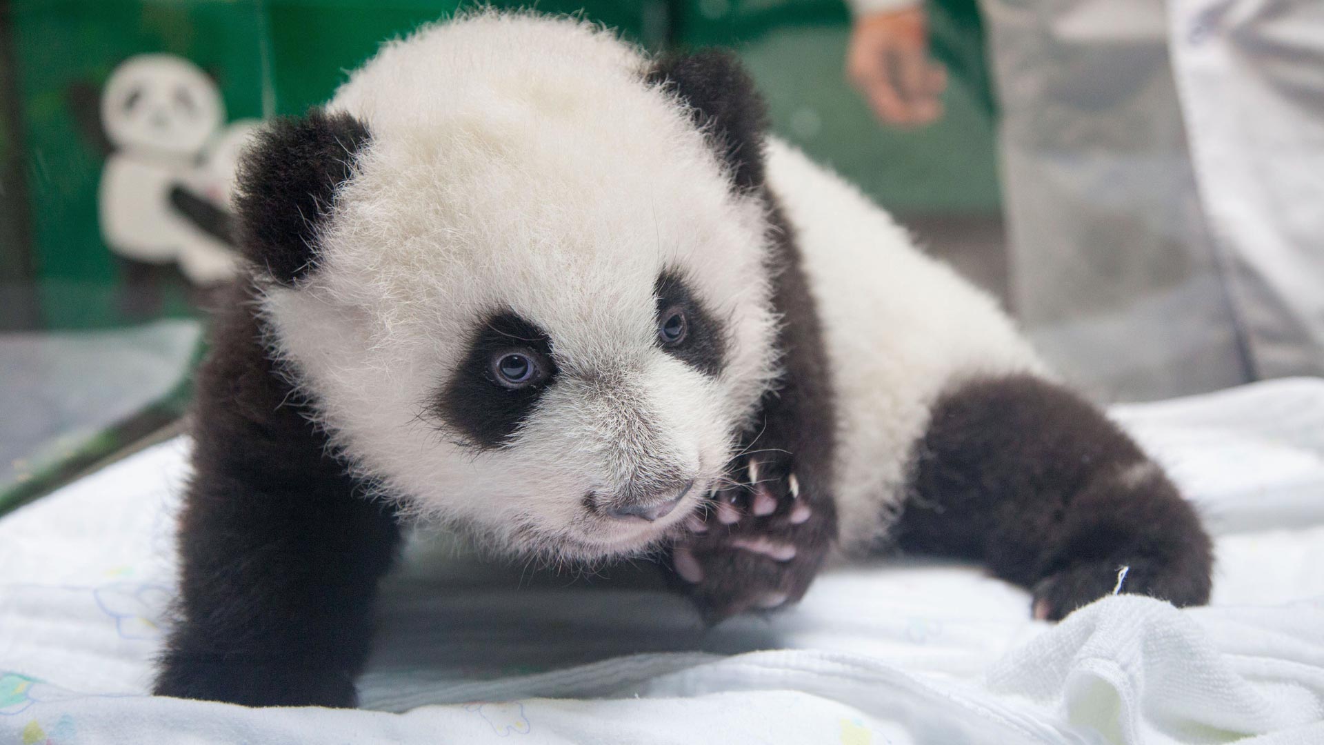 (资料照片)2016年8月9日,上海一只熊猫宝宝满月,她长38厘米(出生:14.3厘米)体重——1497克(出生:151克)。