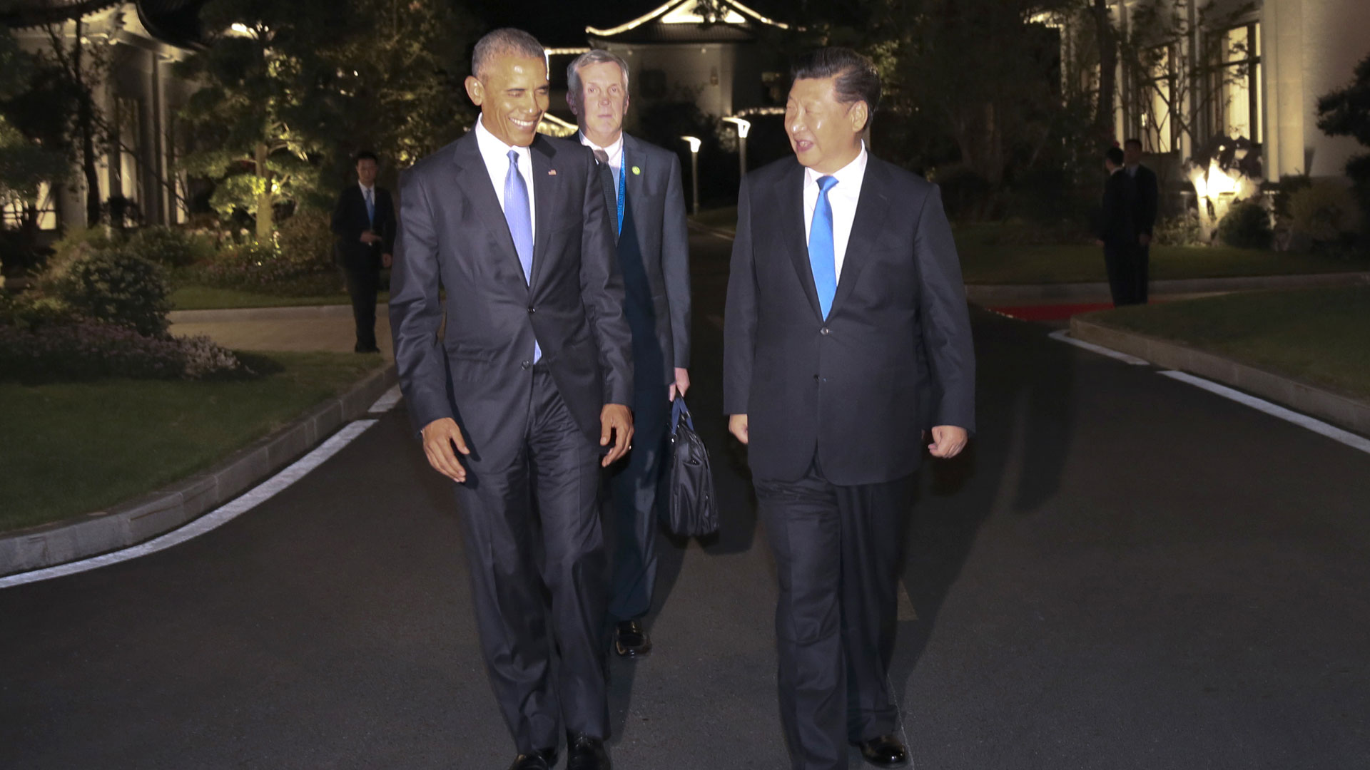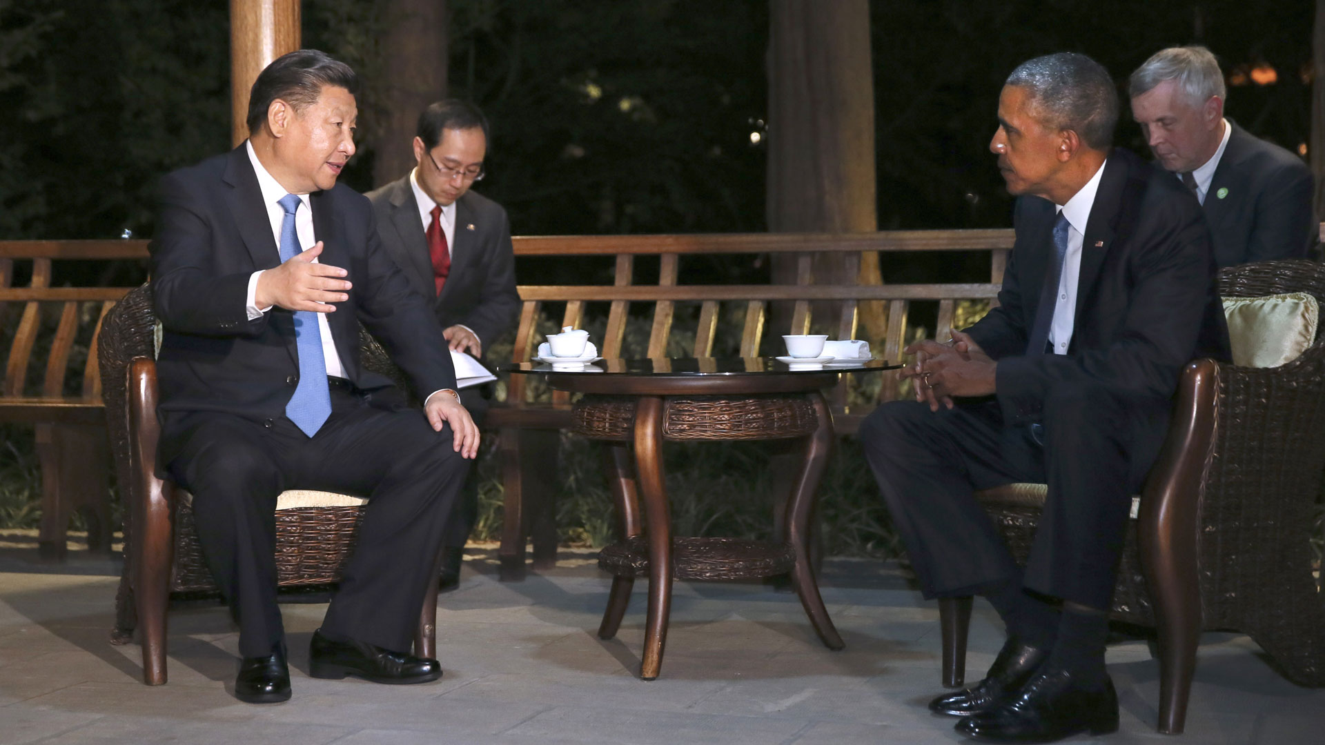 9月3日晚,国家主席习近平在杭州西湖国宾馆与前来出席二十国集团领导人杭州峰会的美国总统奥巴马交谈。 新华社记者 兰红光 摄
