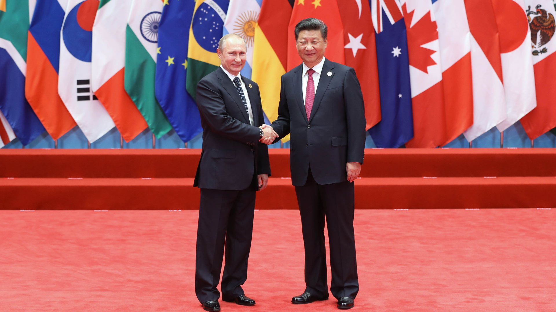 9月4日,二十国集团领导人第十一次峰会在杭州举行,中国国家主席习近平在国际博览中心迎接各成员和嘉宾国领导人、有关国际组织负责人。这是习近平与俄罗斯总统普京握手。 新华社记者马占成摄