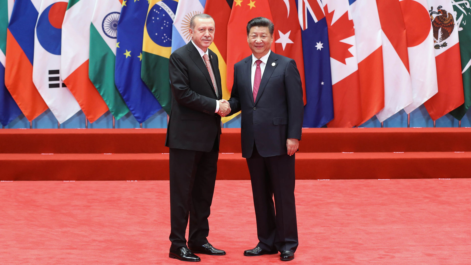 9月4日,二十国集团领导人第十一次峰会在杭州举行,中国国家主席习近平在国际博览中心迎接各成员和嘉宾国领导人、有关国际组织负责人。这是习近平与土耳其总统埃尔多安握手。 新华社记者马占成摄