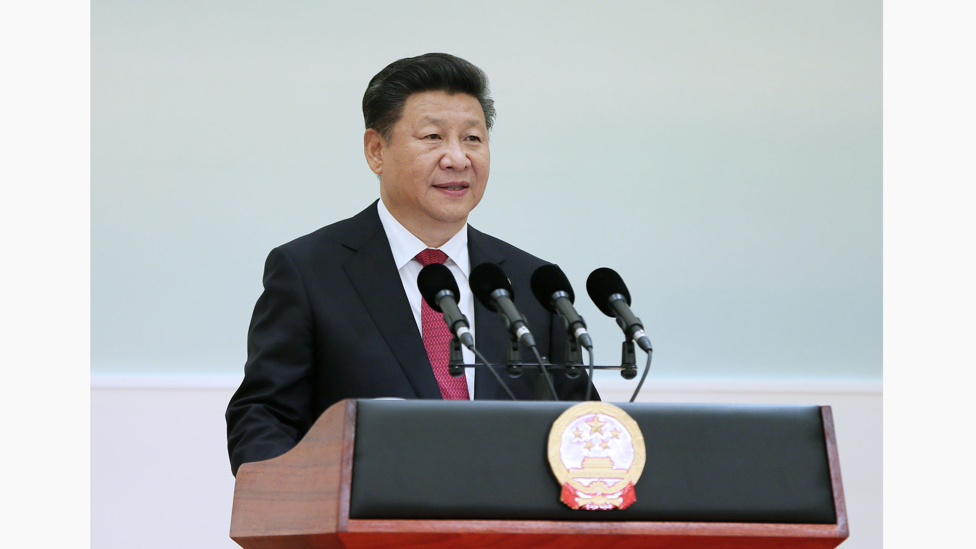 9月4日,国家主席习近平和夫人彭丽媛在杭州西子宾馆举行宴会,欢迎出席二十国集团领导人杭州峰会的外方代表团团长及所有嘉宾。这是习近平发表致辞,代表中国政府和中国人民热烈欢迎各位贵宾的到来。新华社记者兰红光摄