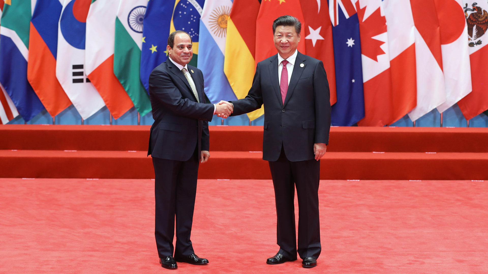 9月4日,二十国集团领导人第十一次峰会在杭州举行,中国国家主席习近平在国际博览中心迎接各成员和嘉宾国领导人、有关国际组织负责人。这是习近平与埃及总统塞西握手。 新华社记者马占成摄