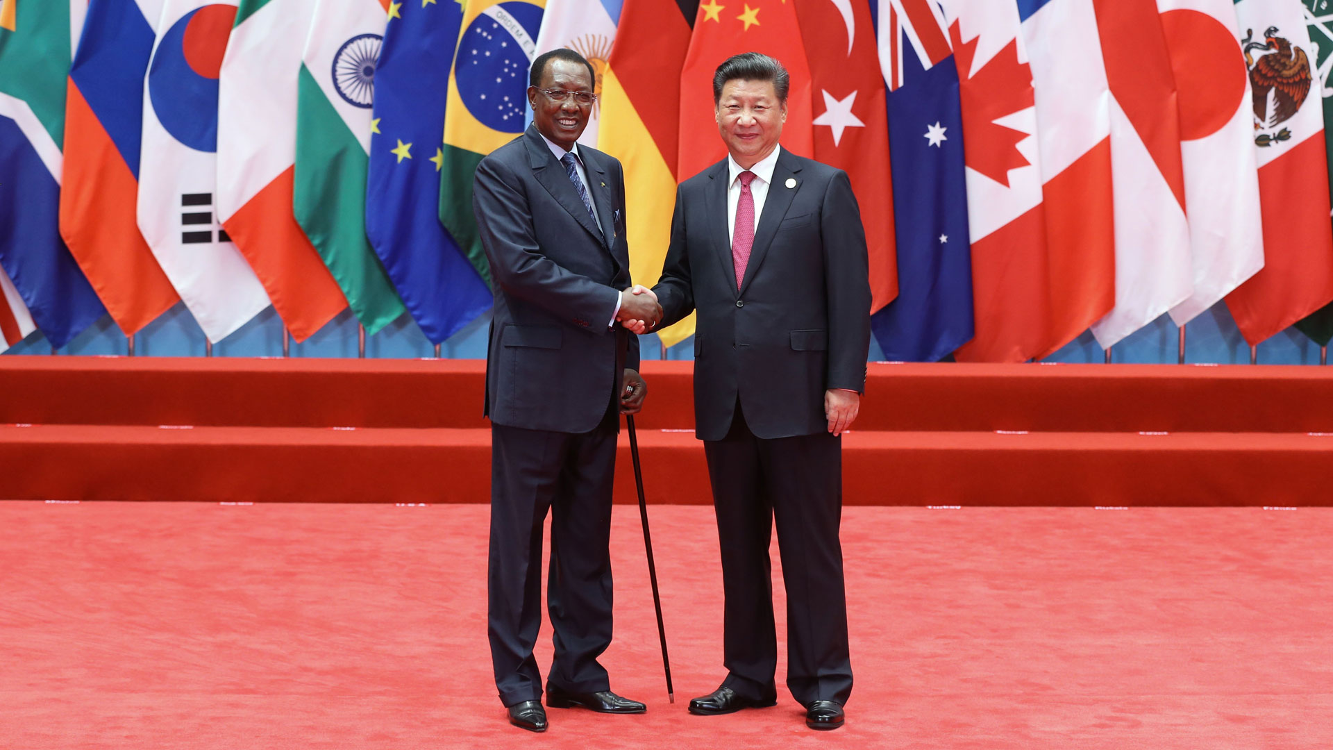 9月4日,二十国集团领导人第十一次峰会在杭州举行,中国国家主席习近平在国际博览中心迎接各成员和嘉宾国领导人、有关国际组织负责人。这是习近平与乍得总统代比握手。 新华社记者马占成摄