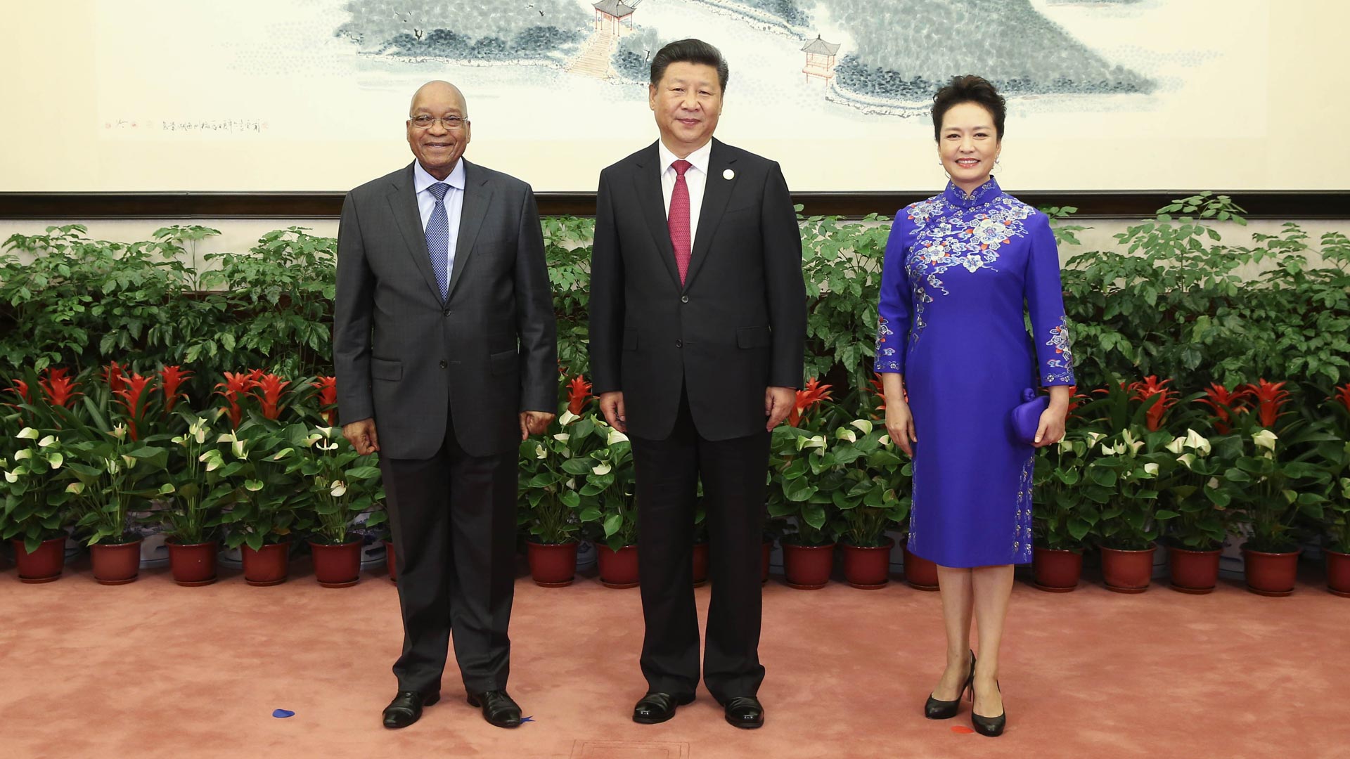 9月4日,国家主席习近平和夫人彭丽媛在杭州西子宾馆举行宴会,欢迎出席二十国集团领导人杭州峰会的外方代表团团长及所有嘉宾。这是习近平和彭丽媛迎候南非总统祖马。新华社记者庞兴雷摄