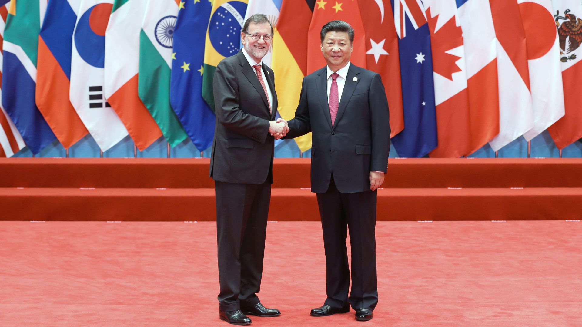 9月4日,二十国集团领导人第十一次峰会在杭州举行,中国国家主席习近平在国际博览中心迎接各成员和嘉宾国领导人、有关国际组织负责人。这是习近平与西班牙首相拉霍伊握手。 新华社记者马占成摄