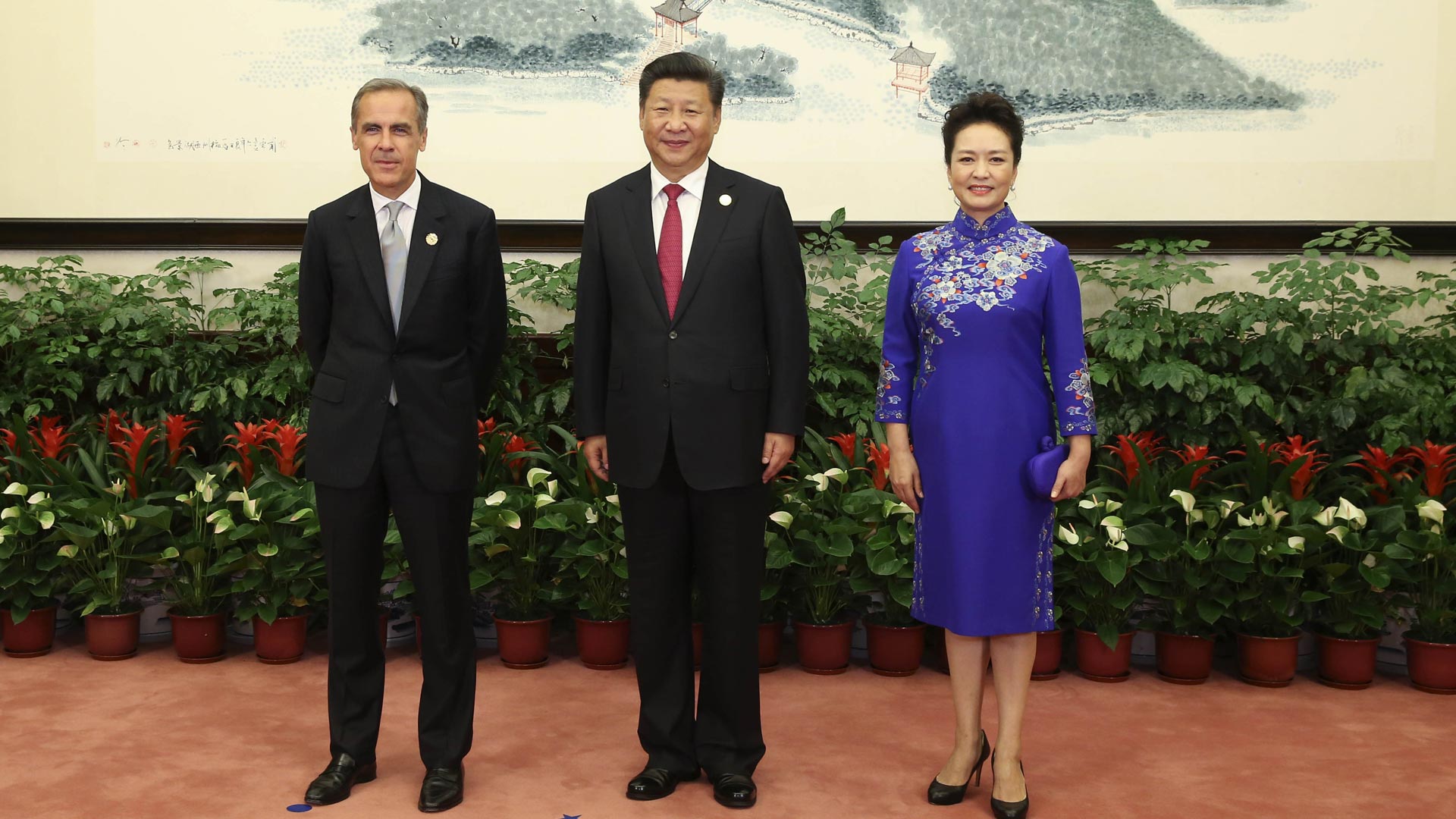 9月4日,国家主席习近平和夫人彭丽媛在杭州西子宾馆举行宴会,欢迎出席二十国集团领导人杭州峰会的外方代表团团长及所有嘉宾。这是习近平和彭丽媛迎候金融稳定理事会主席卡尼。新华社记者庞兴雷摄