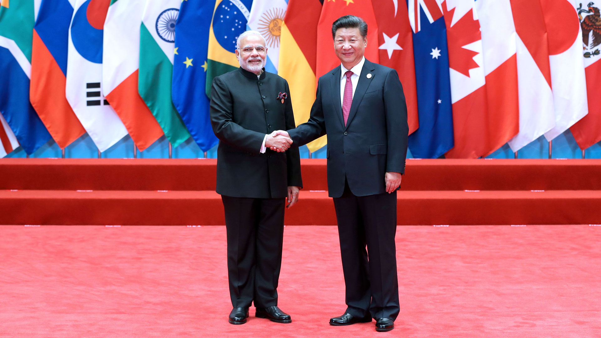 9月4日,二十国集团领导人第十一次峰会在杭州举行,中国国家主席习近平在国际博览中心迎接各成员和嘉宾国领导人、有关国际组织负责人。这是习近平与印度总理莫迪握手。 新华社记者马占成摄