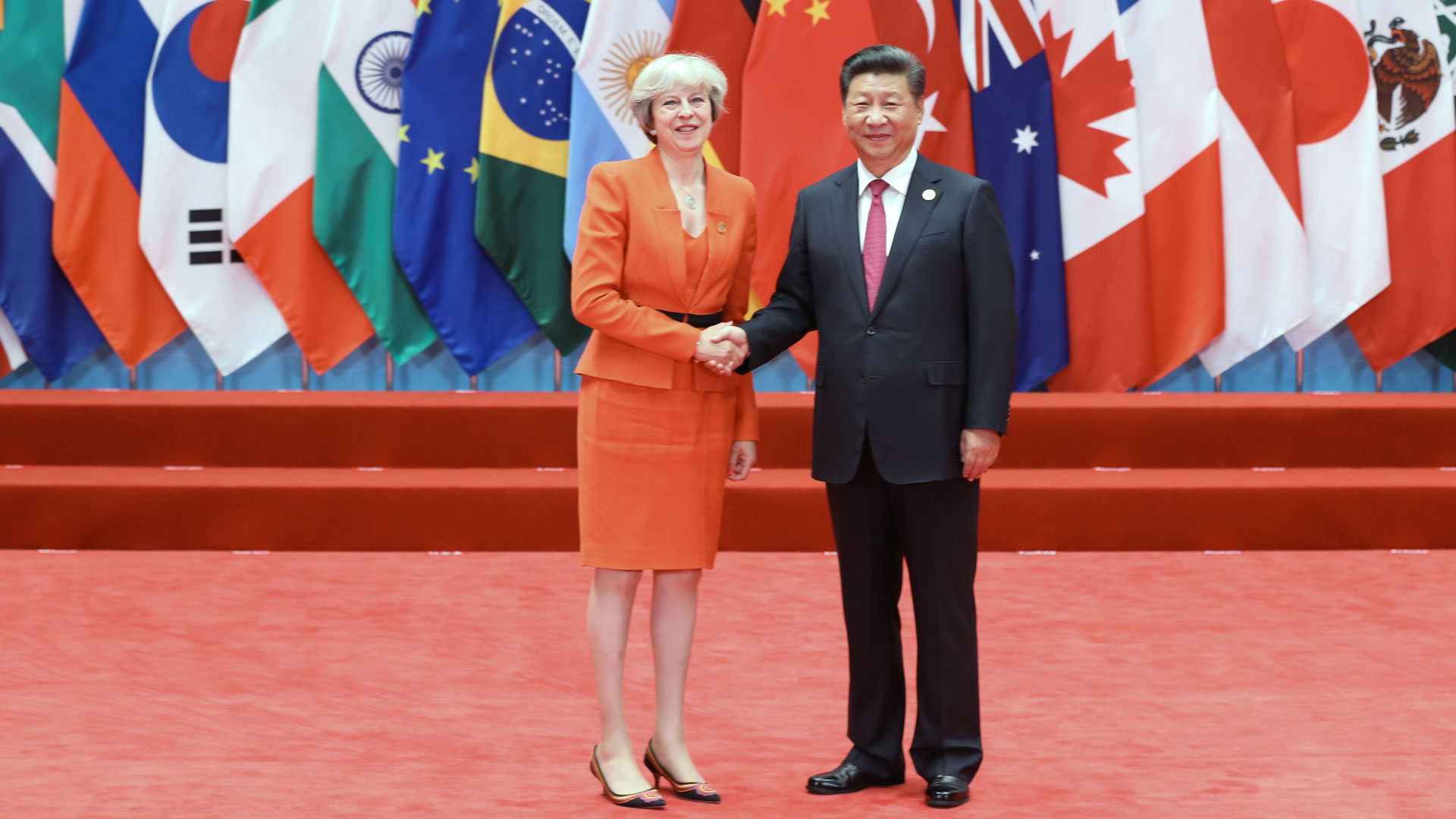 9月4日,二十国集团领导人第十一次峰会在杭州举行,中国国家主席习近平在国际博览中心迎接各成员和嘉宾国领导人、有关国际组织负责人。这是习近平与英国首相特雷莎·梅握手。 新华社记者马占成摄