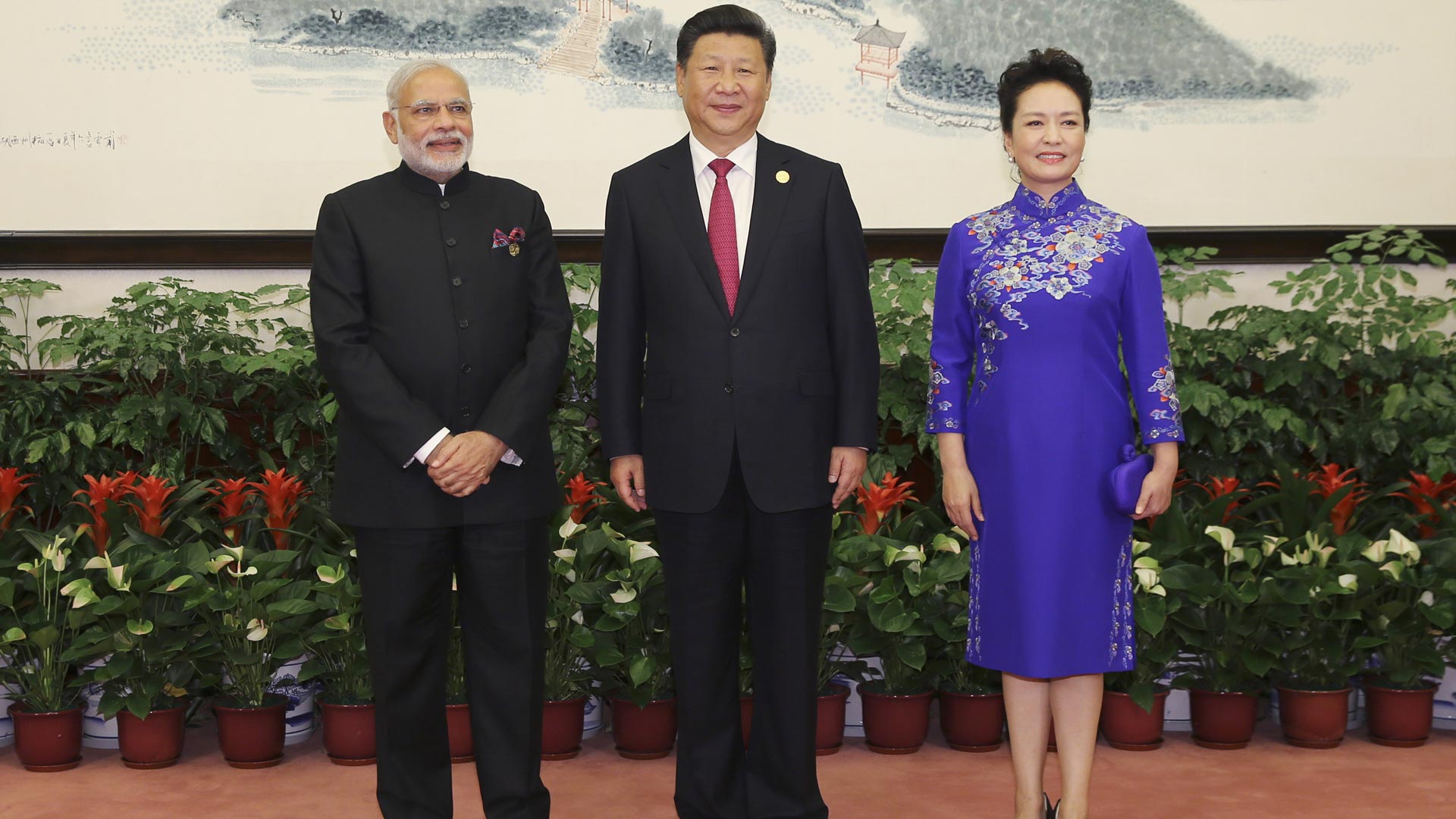 9月4日,国家主席习近平和夫人彭丽媛在杭州西子宾馆举行宴会,欢迎出席二十国集团领导人杭州峰会的外方代表团团长及所有嘉宾。这是习近平和彭丽媛迎候印度总理莫迪。新华社记者丁林摄